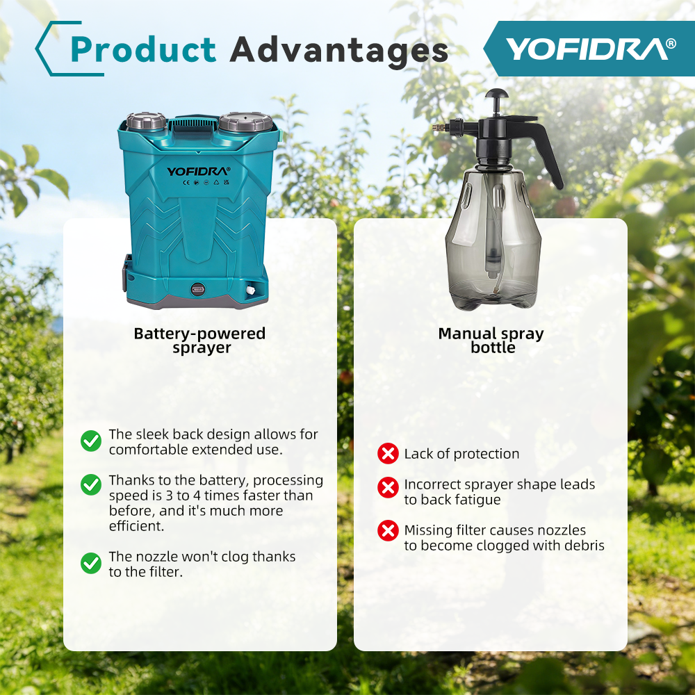 Kabellose Freiheit dank 21V-Stromversorgung – Kein manuelles Pumpen erforderlich; der batteriebetriebene Betrieb verbessert die Effizienz und reduziert die Ermüdung bei längeren Sprühvorgängen.