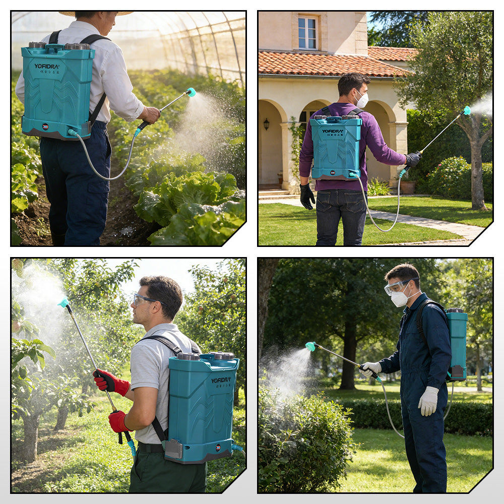 Großes 20-Liter-Fassungsvermögen für längere Einsätze – Der Tank mit hoher Kapazität reduziert häufiges Nachfüllen und ist ideal für landwirtschaftliche Betriebe, Obstplantagen, Gärten und großflächige Sprüharbeiten.