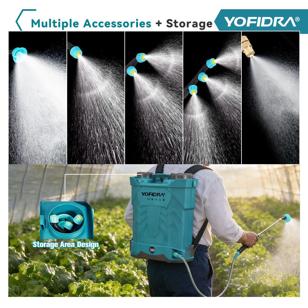 YOFIDRA 20L Akku-Rucksacksprühgerät mit Rührwerk – 21V Hochdruck, mit Mehrfachdüsen-Set und Messinglanze
