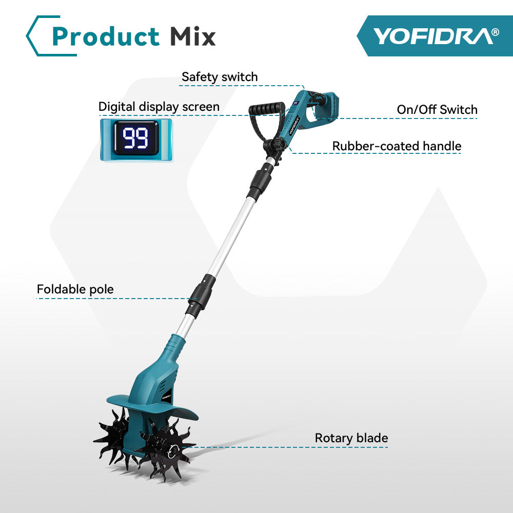 Kompaktes und vielseitiges Design – Die ergonomische Struktur und die doppelseitigen Klingen erleichtern die Handhabung und machen das Gerät ideal für Hausgärten oder kleine landwirtschaftliche Betriebe.
