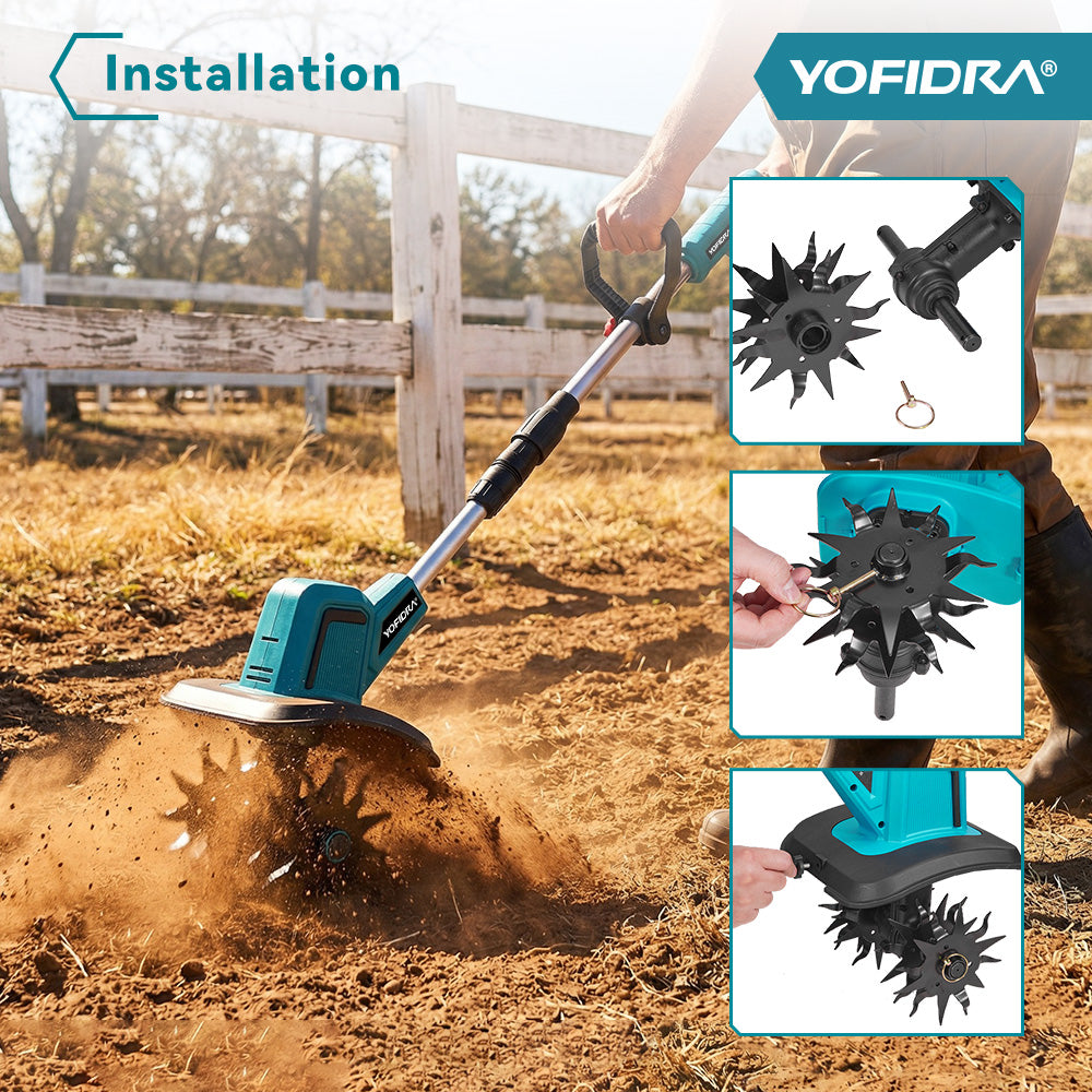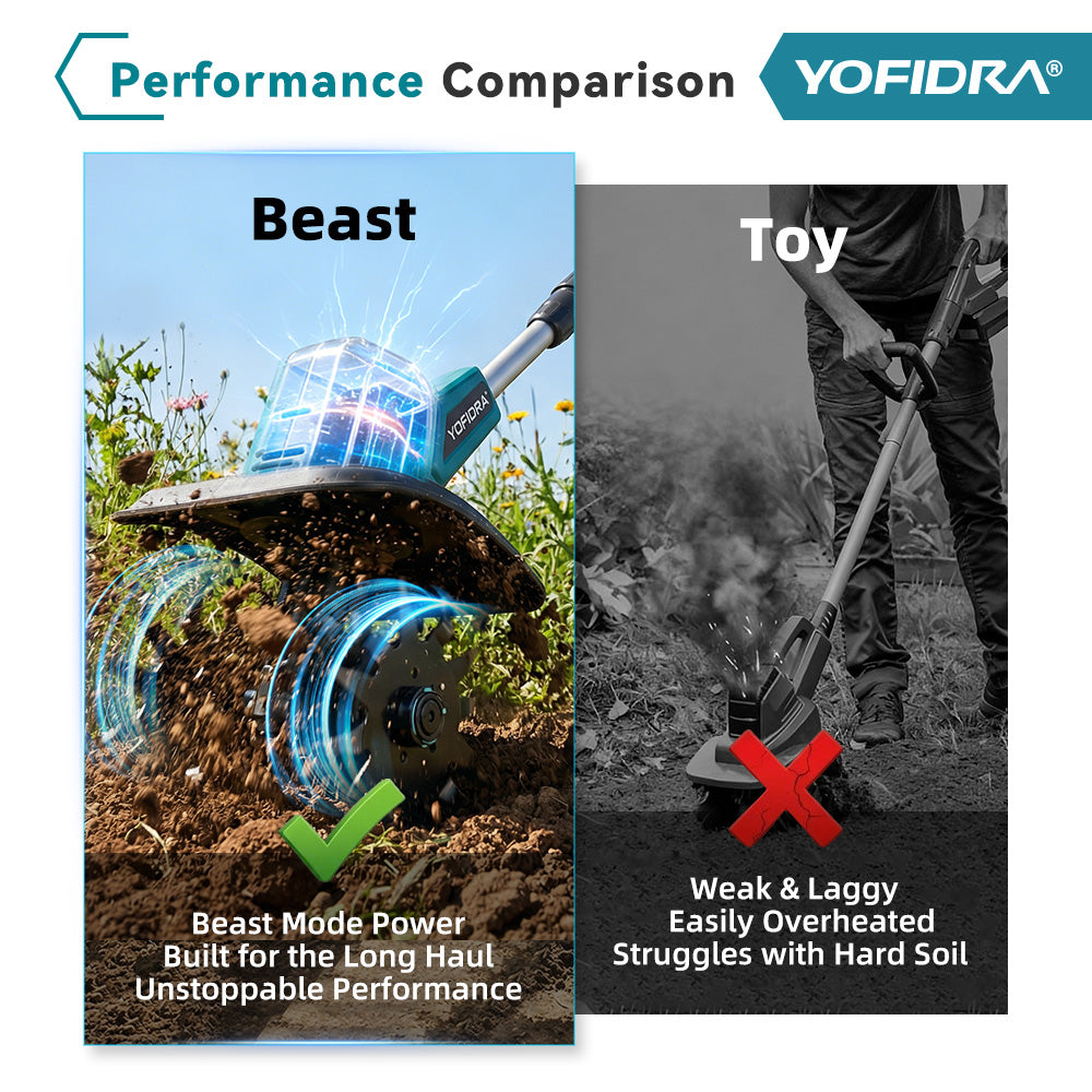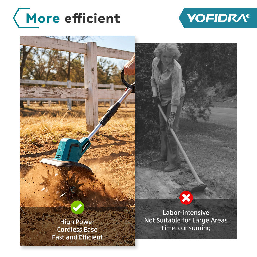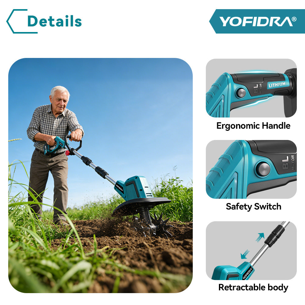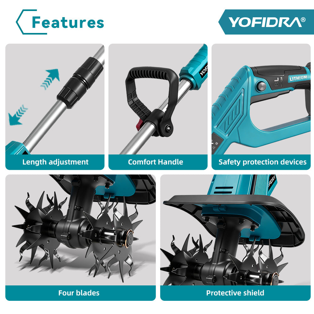 Powerful & Efficient 1500W Motor – Double-sided 4-blade cutter cultivates up to 8 inches wide and 6 inches deep, quickly preparing soil for planting or aerating lawns.