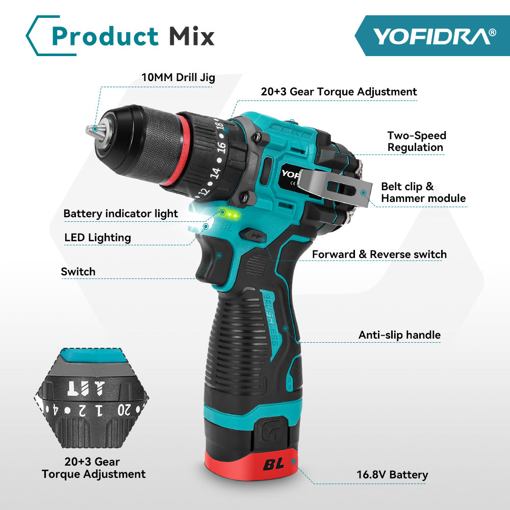 Función 3 en 1: cambie fácilmente entre los modos de impacto, destornillador y taladro eléctrico con más de 20+3 configuraciones de torsión para aplicaciones versátiles.