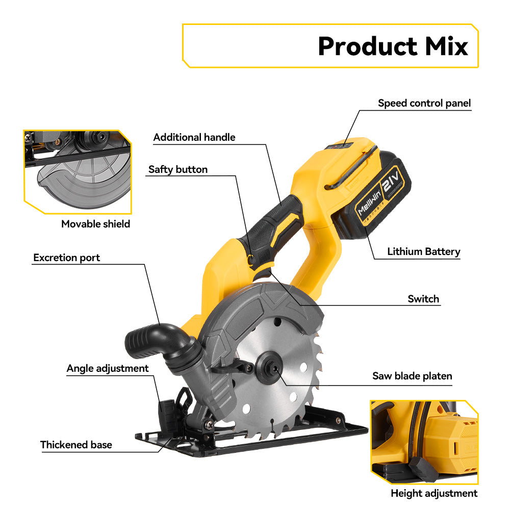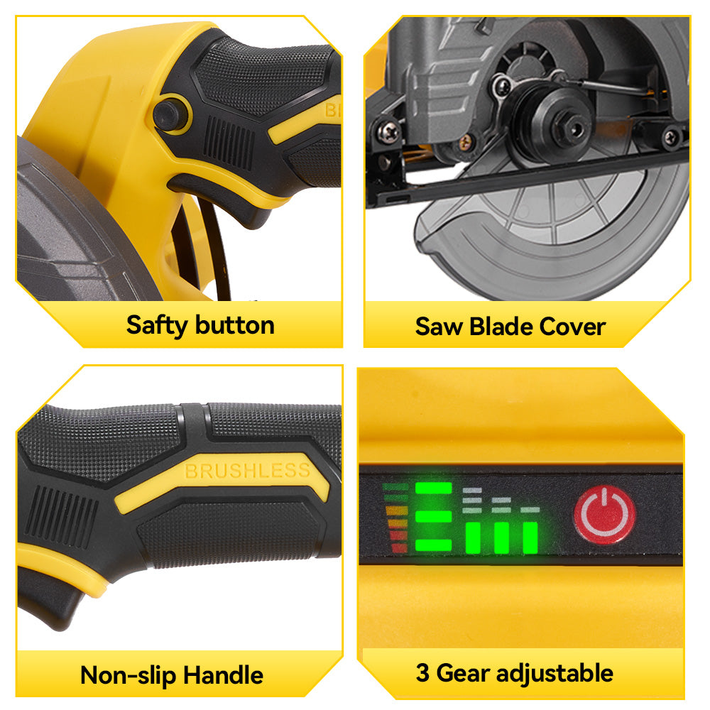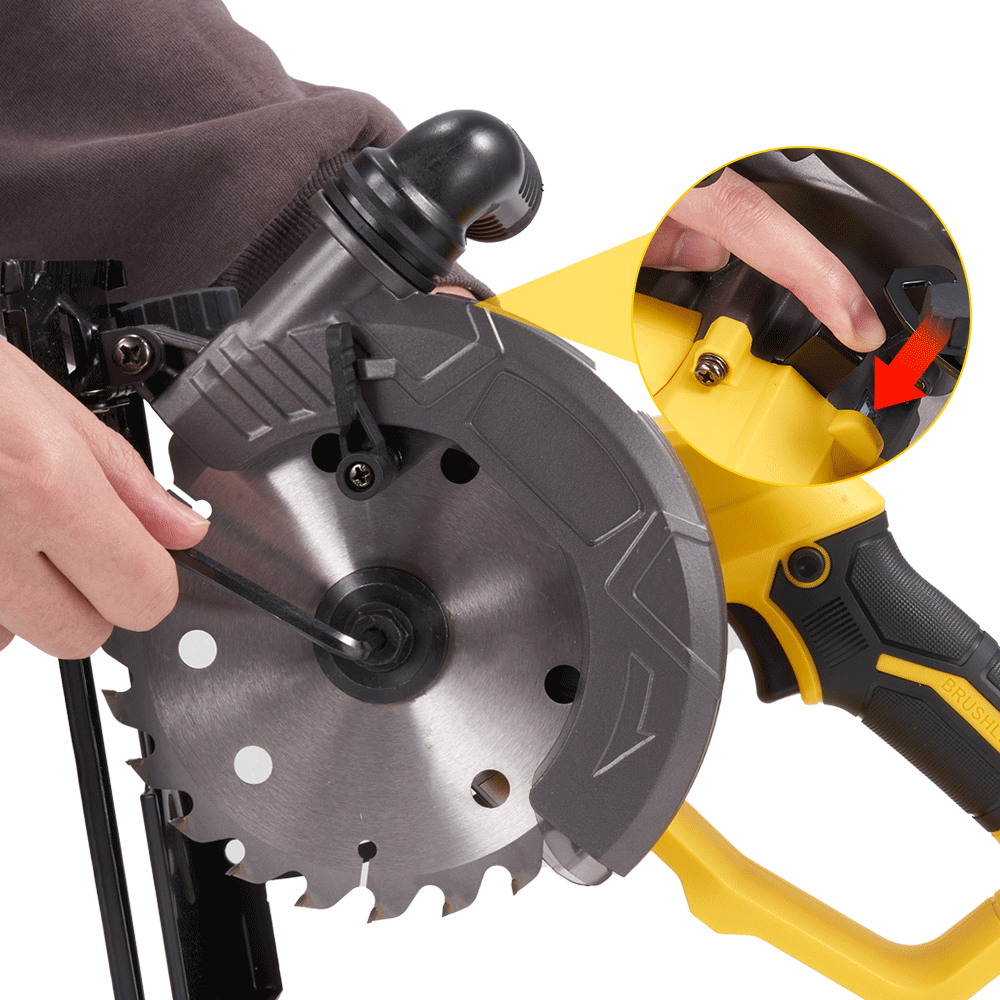 Mayor seguridad y larga vida útil : la cubierta protectora semicircular bloquea el polvo y los residuos; el interruptor manual con botón de bloqueo mejora la seguridad; el motor sin escobillas extiende la vida útil de la herramienta.