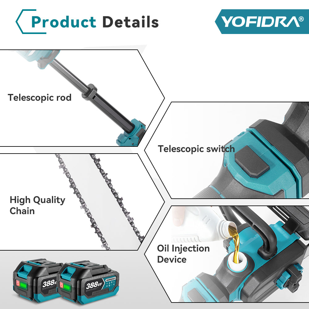 Smart & Safe Features – Automatic chain lubrication, one-key pause, variable speed, and anti-touch switch ensure smooth and secure operation.