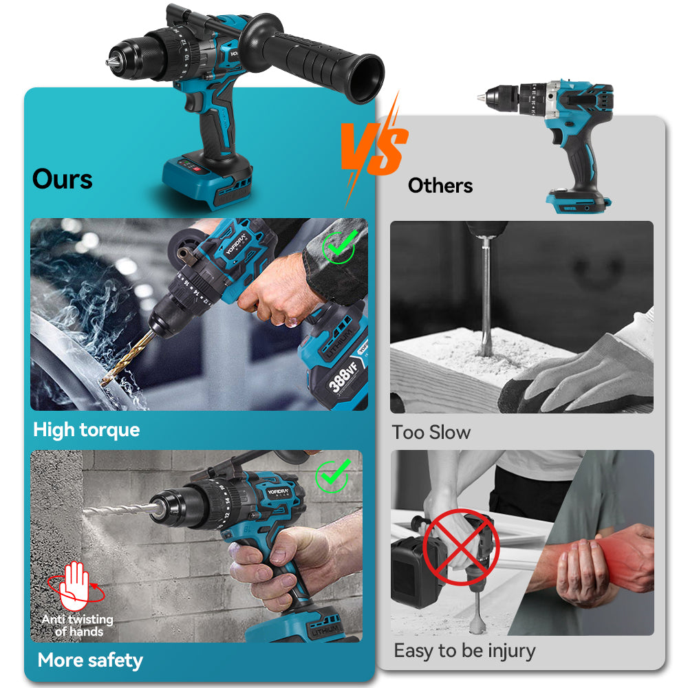 3 Working Modes: Drill, Screwdriver, and Hammer functions for multiple applications.