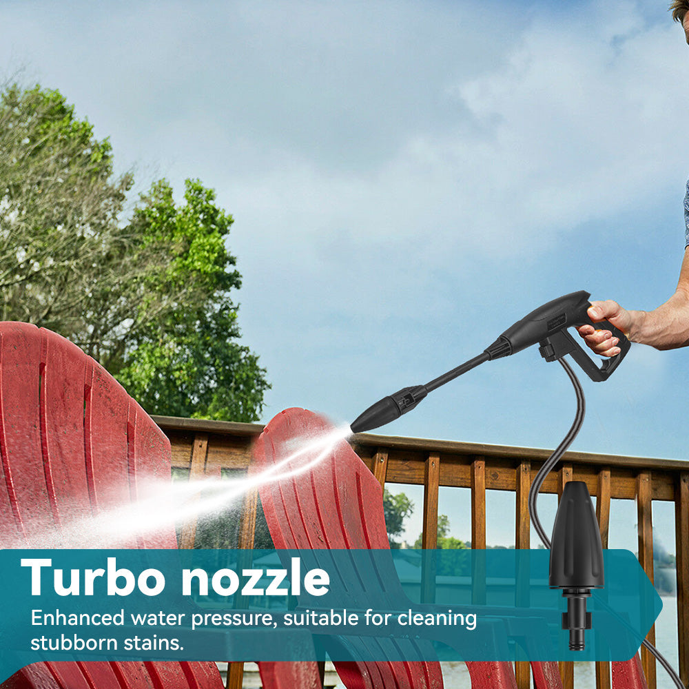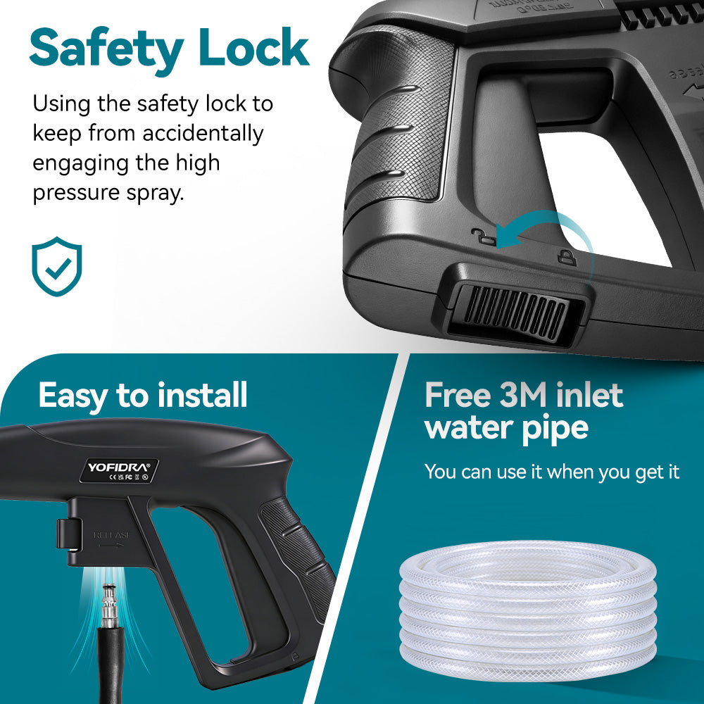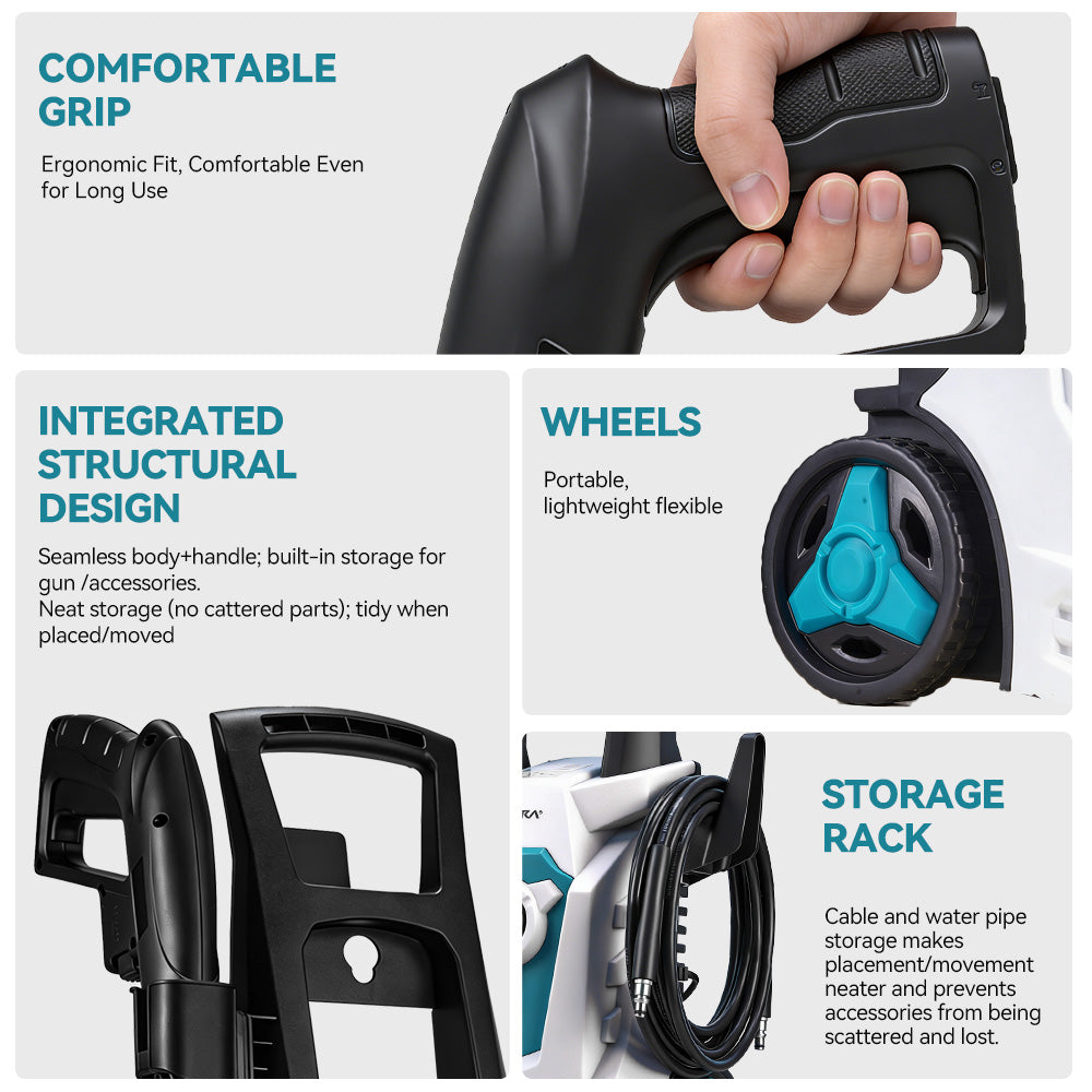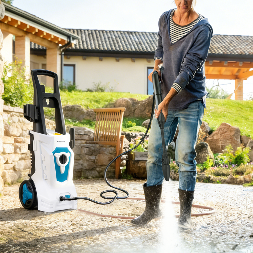 Powerful Cleaning: 1200W carbon brush motor delivers up to 90 bar max pressure for cars, bikes, patios, and outdoor surfaces.