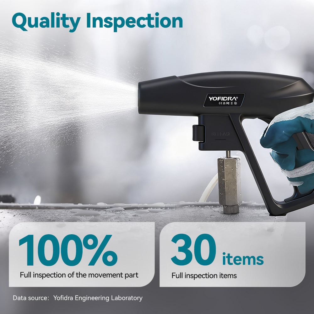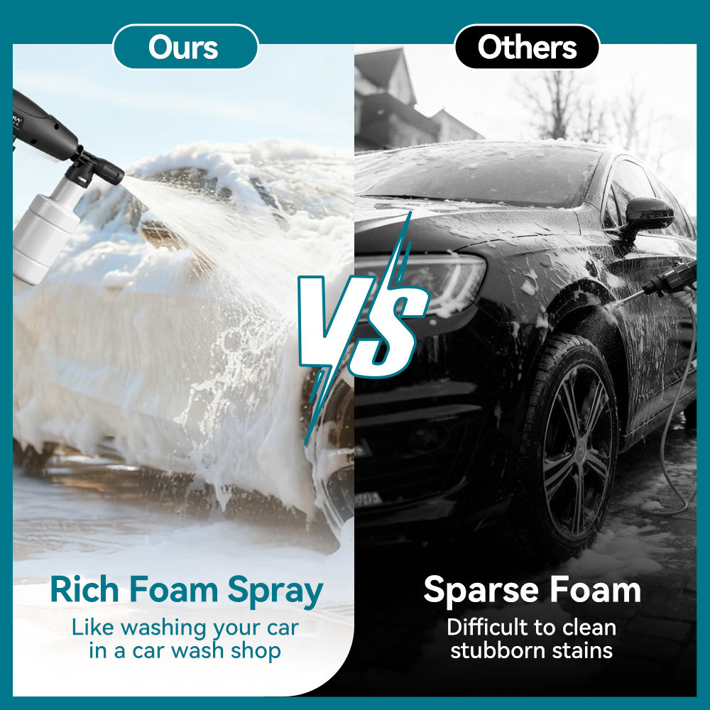 Complete Washing Kit: Includes 5m high-pressure hose, 3m inlet pipe, spray gun, foam bottle, rotary nozzle, quick connectors, towel, gloves, and sponge.