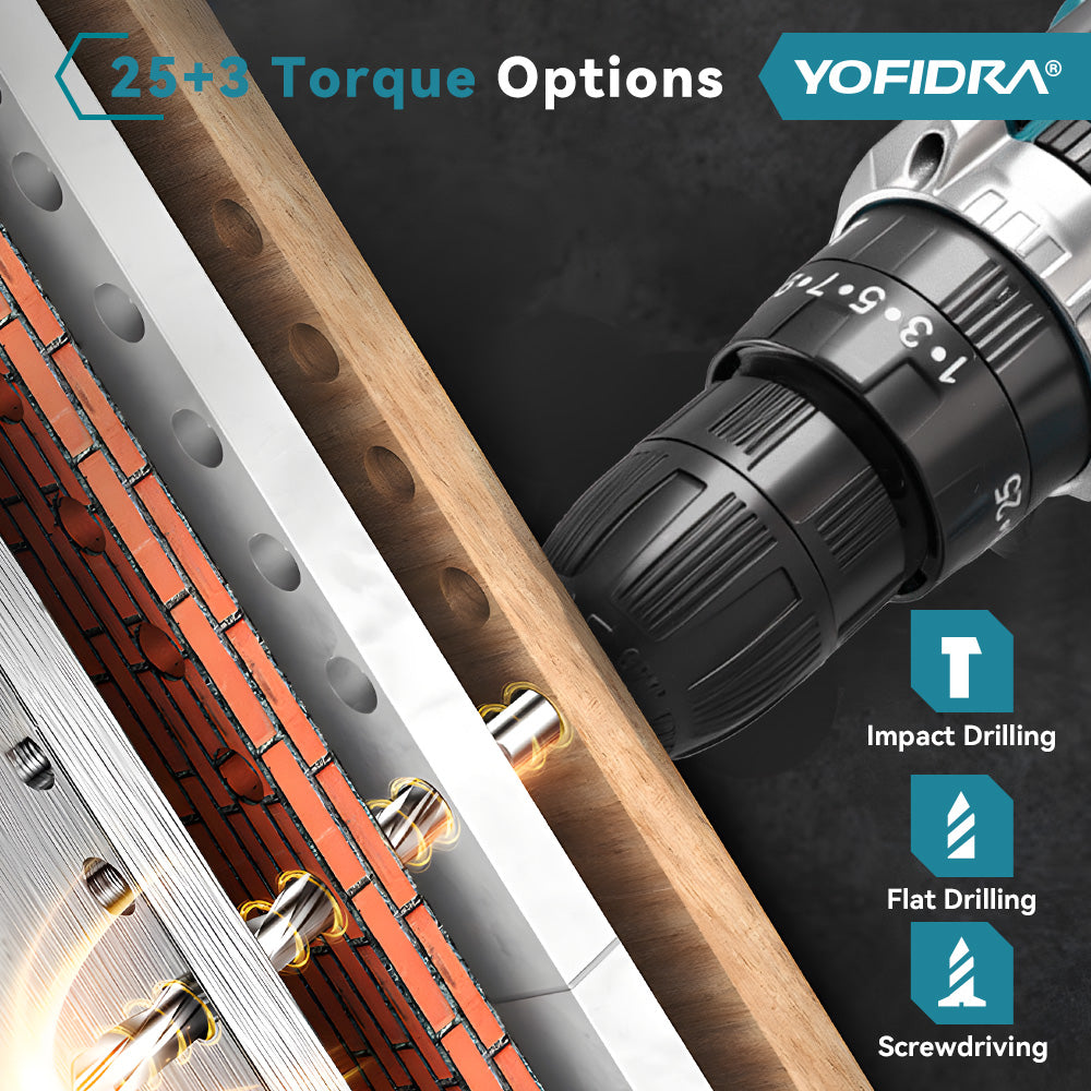 25+3 Torque Settings: Provides precise control for different materials and applications.