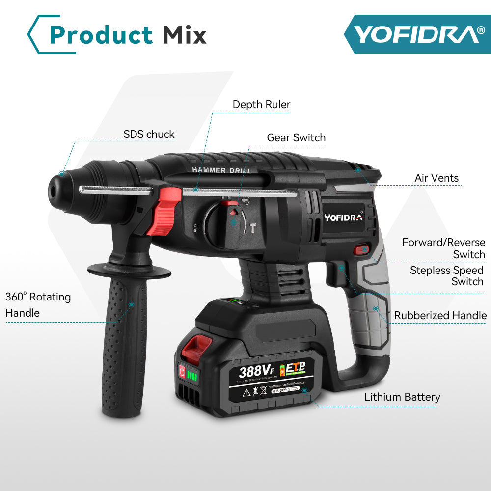 Multi-Function Versatility – Easily switch between modes to handle demolition, chiseling, and other tasks efficiently.