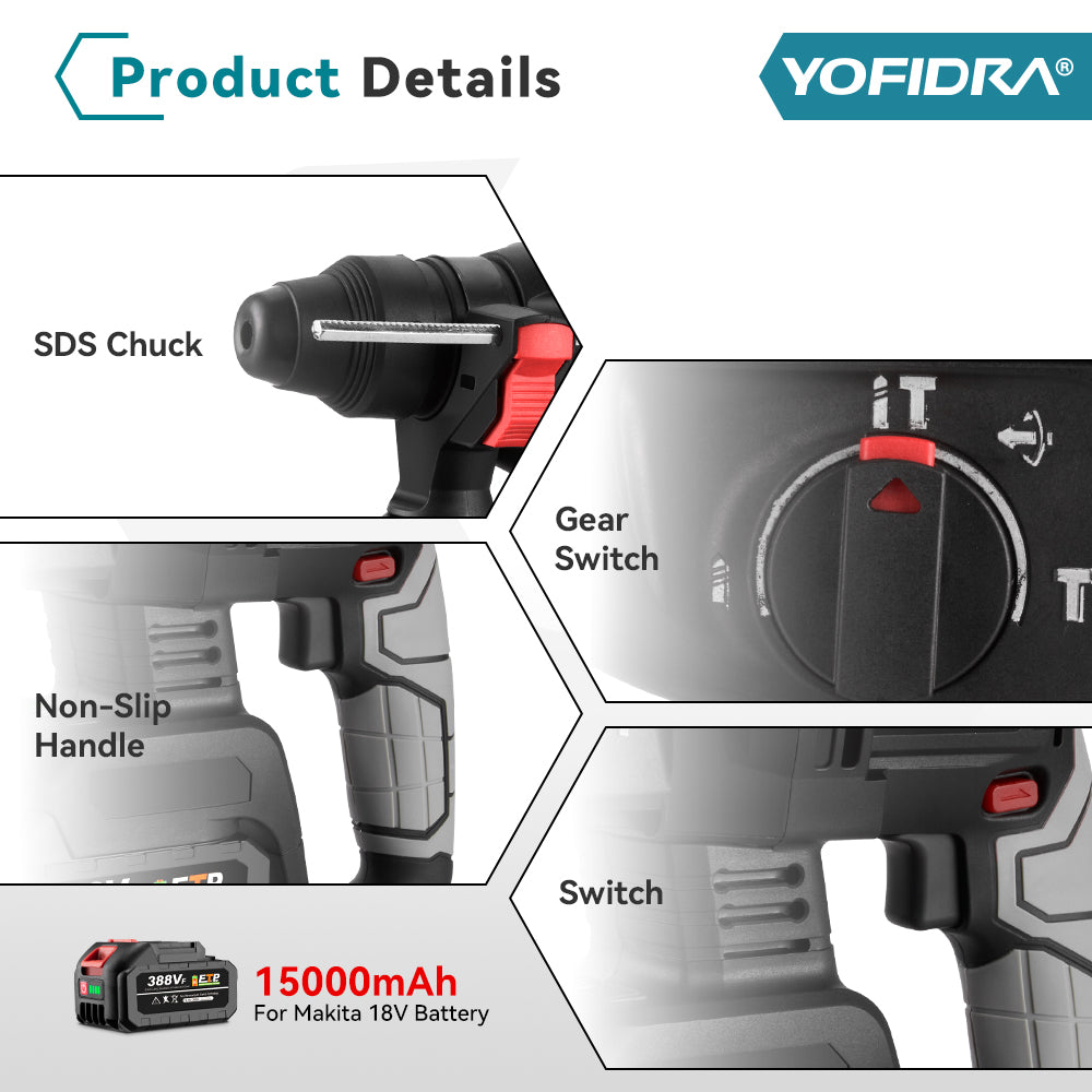 High-Performance Motor – Delivers up to 6,500 RPM with strong impact for fast, efficient demolition.