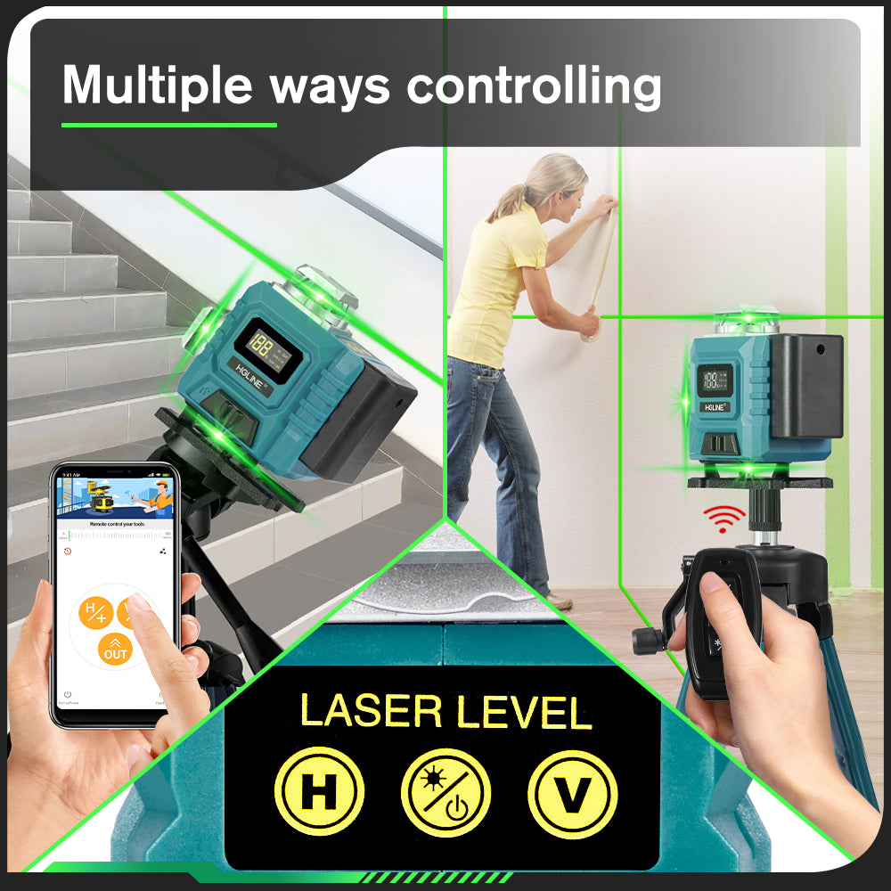 Switch seamlessly between Mobile APP remote control and Bluetooth remote control. Easily select desired laser lines from a distance, perfect for hard-to-reach areas.