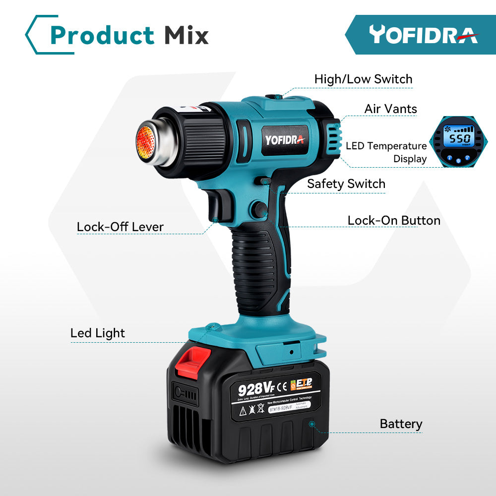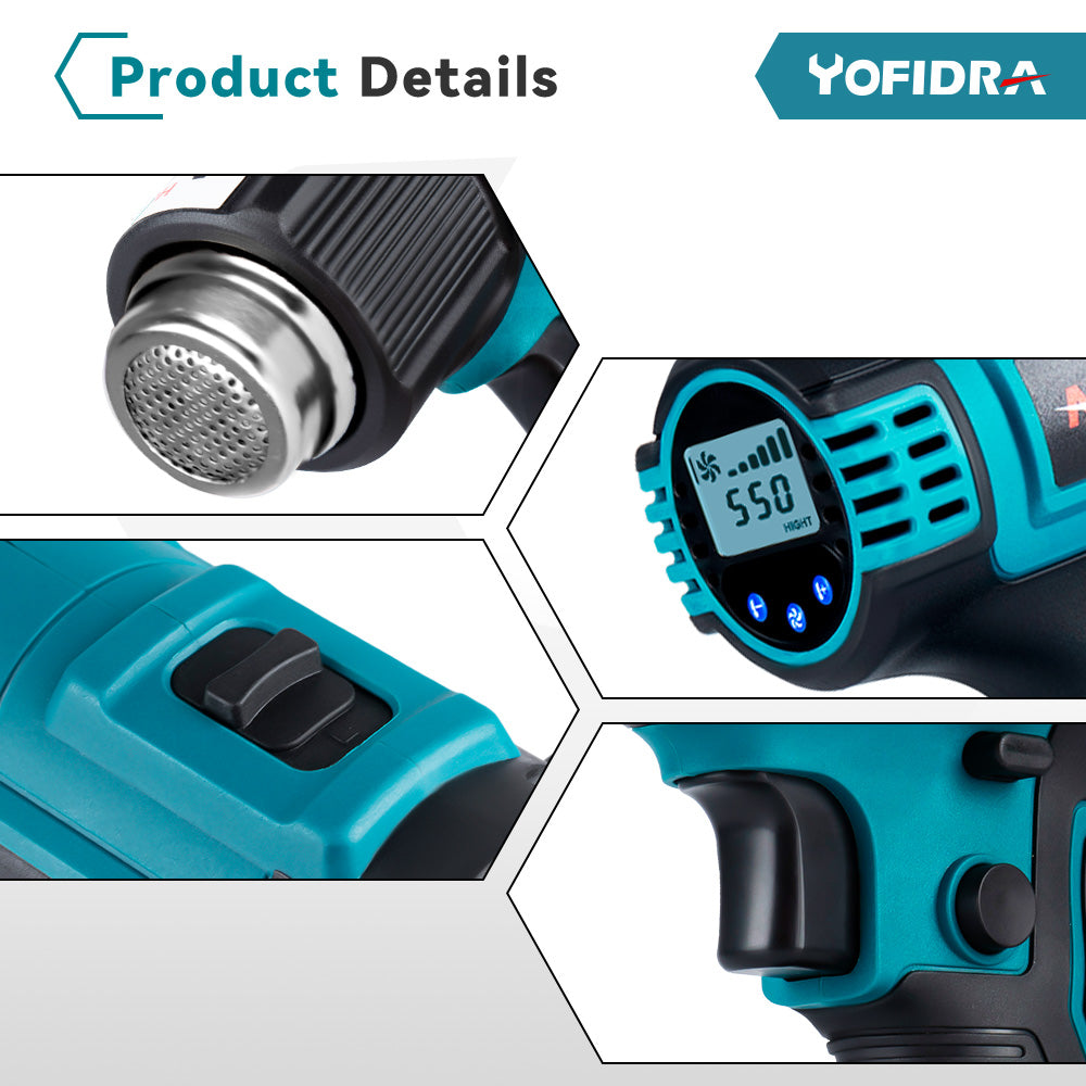 Versatile Applications with Specialized Nozzles: Flat and curved nozzles for tasks like paint removal, cable heat shrinking, and defrosting, ideal for car filming, softening wires, and more.